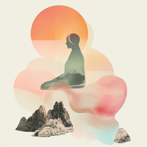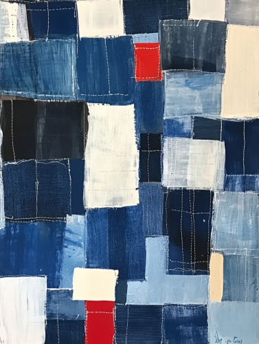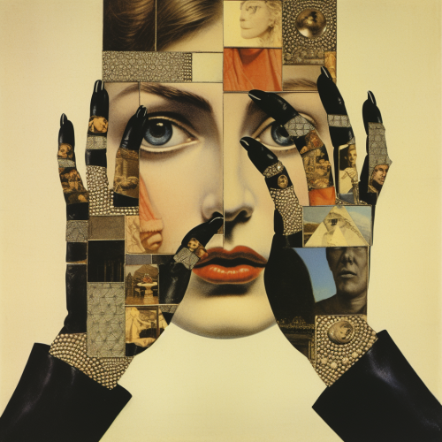 a human full body abstract paining, collage, eclectic style painting mixes prints, patterns, and textures, --no mockup --no flowers --style raw --c 50 --s 750 --v 5.2