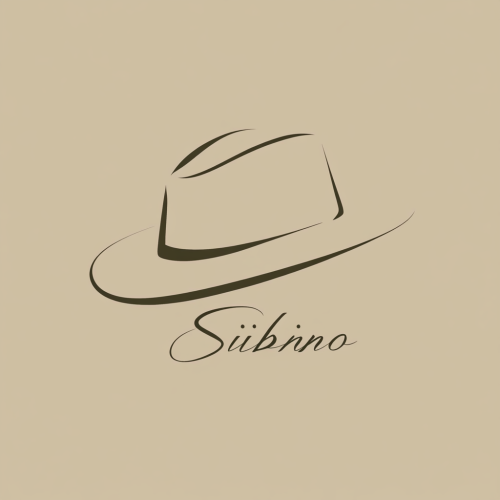 A minimalist logo for a clothing brand named 'Sibino', featuring a stylized Fedora hat as the central element. The hat is the primary focus, with the name 'Sibino' elegantly written on it, seamlessly blending into the design. The logo maintains a clean and timeless look, incorporating neutral, earthy tones like beige, brown, or olive green. The overall design is simple yet iconic, reflecting the classic style, honesty, and rural legacy of the brand's inspiration.