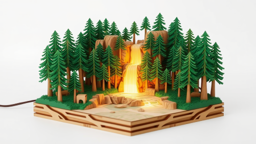 cute goldendoodle with pink collar and gold nameplate in pixar style in the forest from the movie up --no people, houses, balloons, birds --ar 16:9 --v 6.0