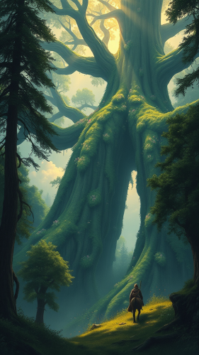 hyper detailed oil painting of a gigantic green oak tree, family tree --ar 500:707