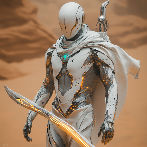 Dune themed, cybernetic armor, male elven technomancer, dual wielding glowing/imagineDune themed, cybernetic armor, male elven technomancer, dual wielding glowing scimitars, artistic details, hdr, hyper detailed scimitars,