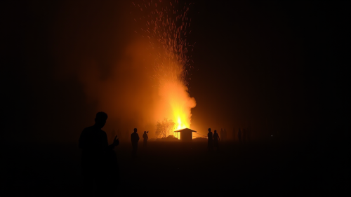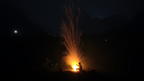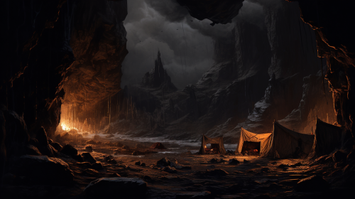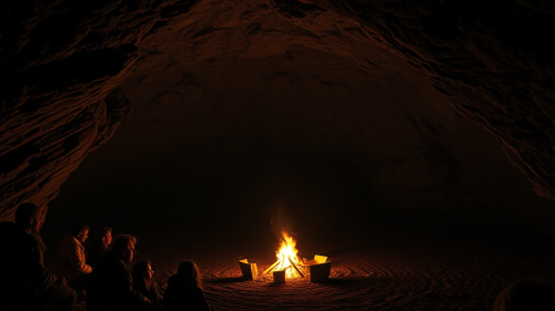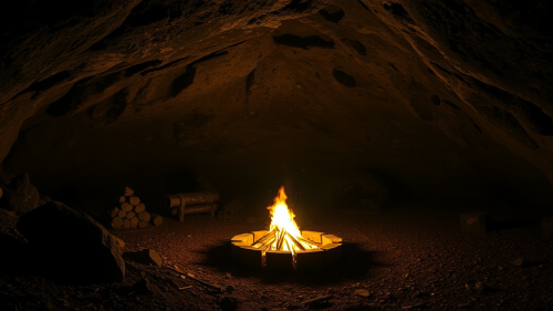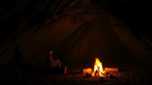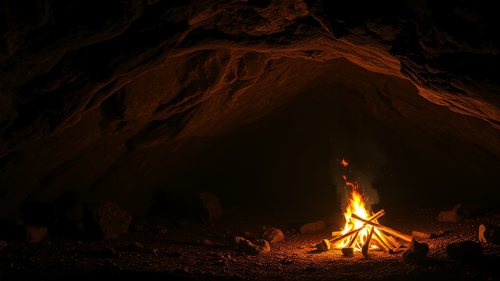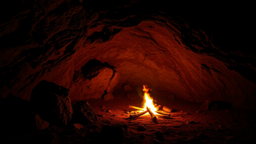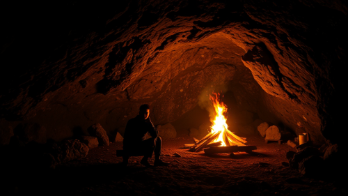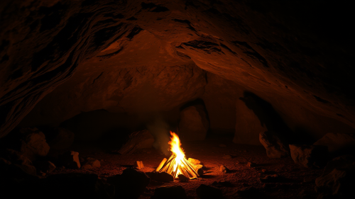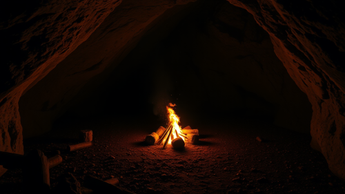 A Night Inside a Cave with Bonfire Glow.
