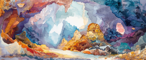 watercolor painting of inside of carsbad Caverns national park panoramic view, --ar 12:5 --v 6.0 --s 250