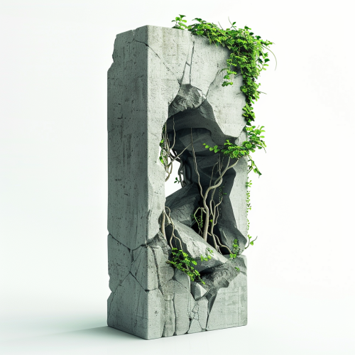 vertical concrete column block with a cave inside. white background
