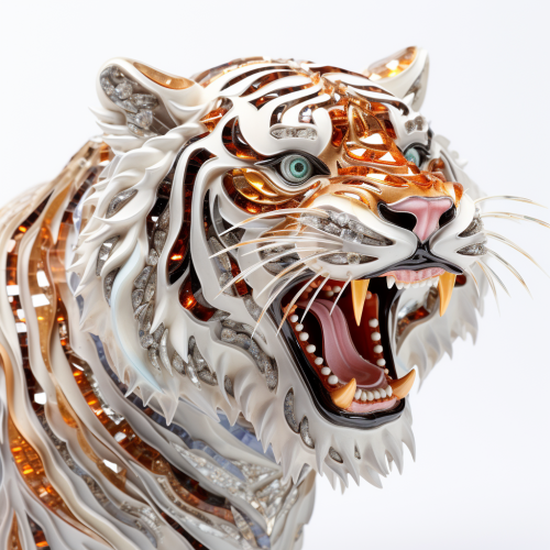 dynamic and roaring japanese tiger made out of jewels and diamonds on white background