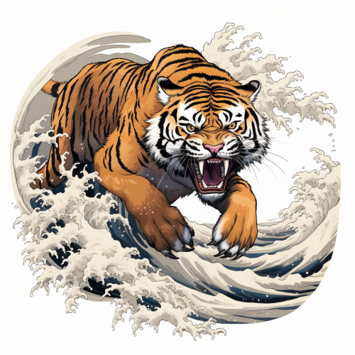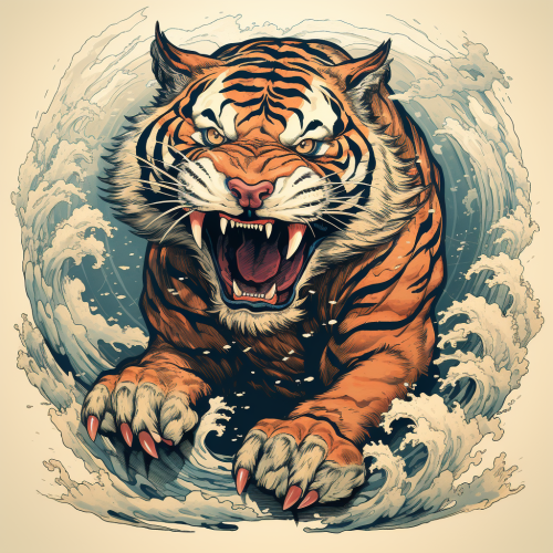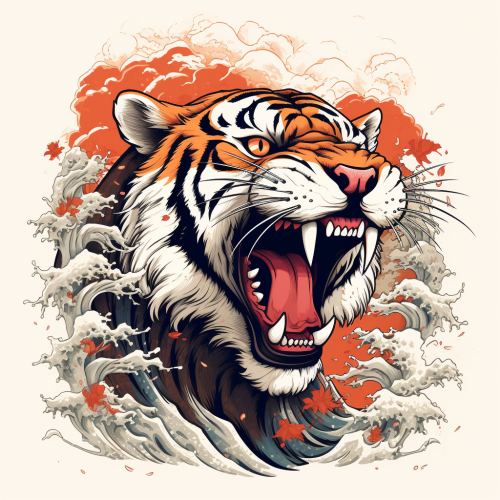illustration of a dynamic and roaring japanese tiger. traditional design and full body