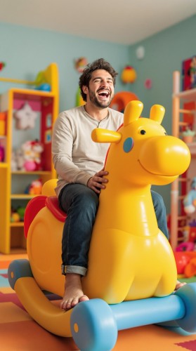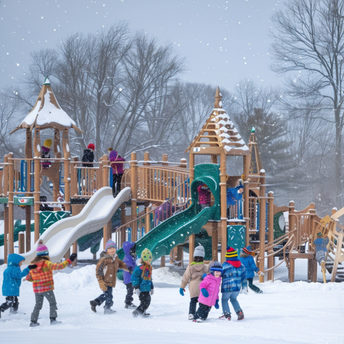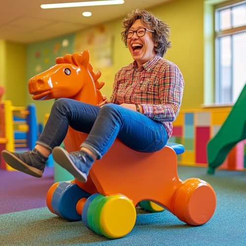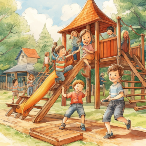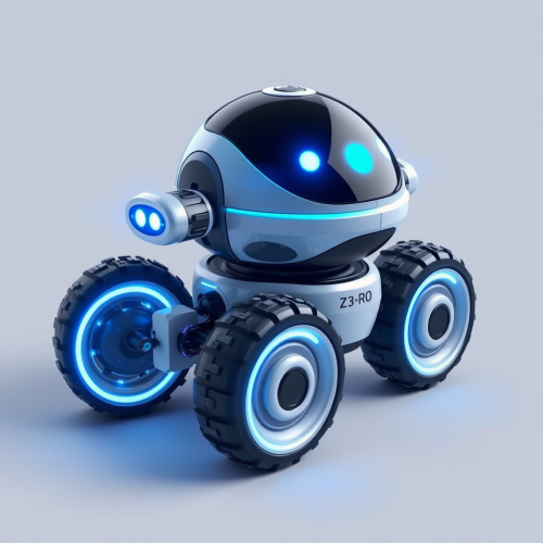 An AI robot playing in a futuristic playground.