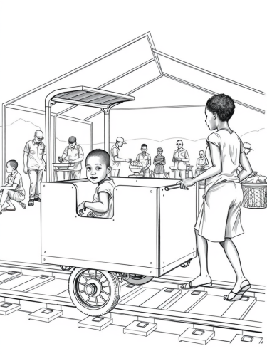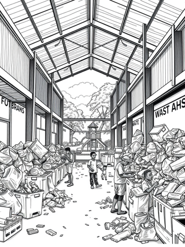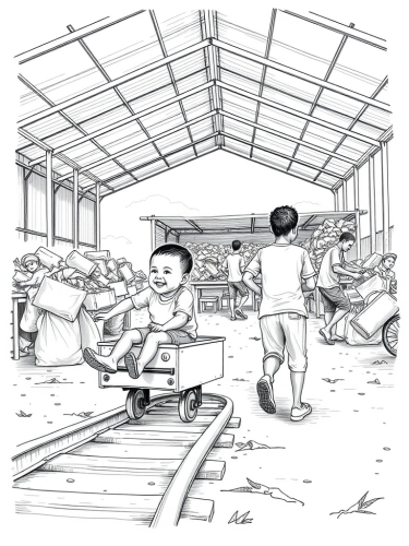 storyboard illustration wide shot of a ground of kids playing double dutch skip rope in an inner city urban playground, concept art, storyboard, black and white, pencil drawing, --ar 16:9 --v 6.1