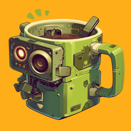 a green square mug with an AI robot statue --niji 6