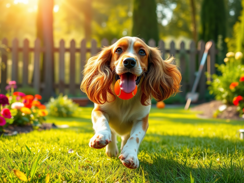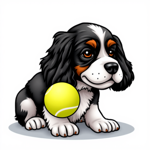 Cocker Spaniel Dog With Tennis Ball Outdoors