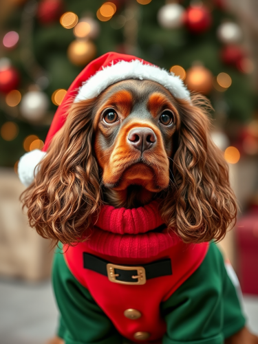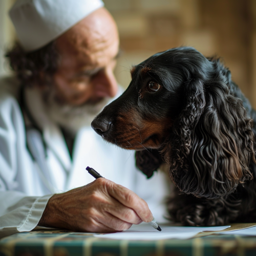 A black and brown cocker spaniel working in a resort helping a 30 year old Jewish doctor survey new tools. --v 6.0