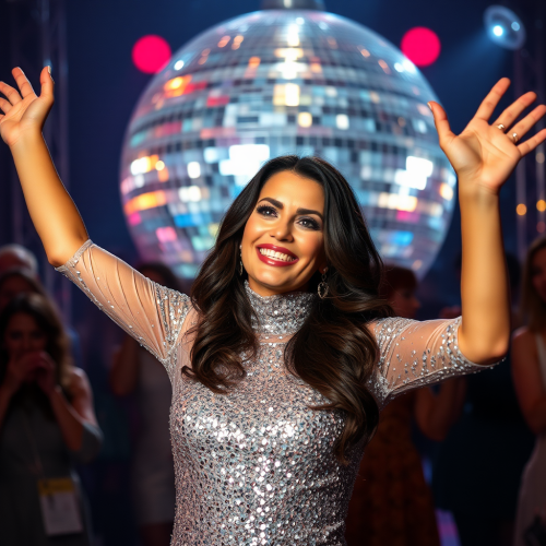 A low angle action shot of a current Gen Z woman resembling Christie Brinkley playing tennis on an outdoor court, captured mid-swing with dynamic motion, her face focused and determined, wearing modern tennis gear, in bright daylight with strong shadows, shot with a Canon EOS-1D X Mark III, 50mm f/1.4 lens, vibrant colors with a contemporary and energetic vibe, –ar 16:9