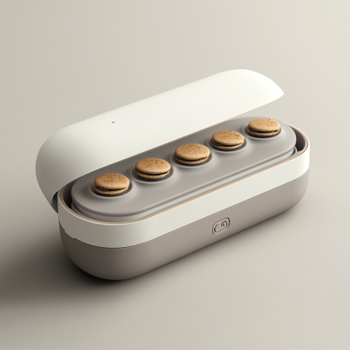 Design a sleek, portable cooking appliance for kids' snacks that transforms into a seamless, fully enclosed object with no visible buttons or protrusions when closed. The appliance features a single, versatile non-stick plate for making s'mores, pancakes, and other small snacks. When not in use, the unit closes into a smooth, minimalist form, with buttons and controls hidden inside for a clean exterior. The design includes a sturdy handle for easy carrying, but when closed, it becomes part of the seamless structure. The exterior is finished with matte, high-quality materials that blend well with indoor decor, allowing it to function as an aesthetic object in the home. The color palette should include earthy tones and subtle metallic accents, ensuring it complements both modern and rustic interiors. The design should prioritize portability, durability, and a child-friendly approach while maintaining a sophisticated look suitable for both outdoor adventures and indoor settings.