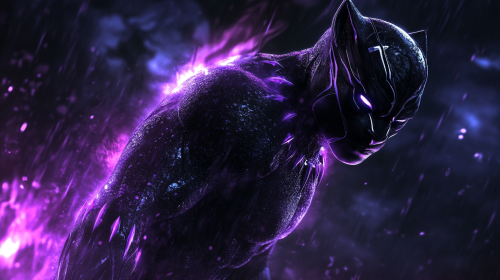 abstract background featuring black and purple colors, light streaks, moody and dramatic lighting, based on the Black Panther marvel comic book --ar 16:9