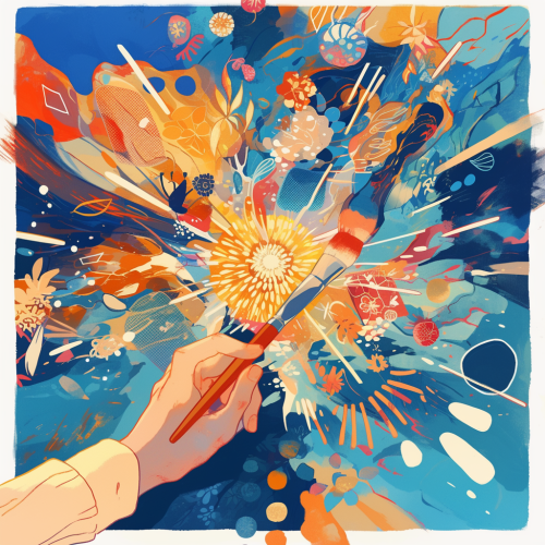 a girl in colorful abstract painting, in the style of yuumei, close-up intensity, neo-pop iconography, shilin huang, dark blue and light black, colorful comic strips, swirling colors --ar 69:128 --s 750 --v 5.2