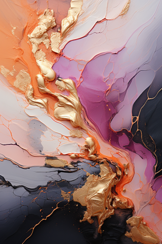 abstract painting gold copper and peach painting by janet sain, in the style of light magenta and black, kintsugi, close up, paint dripping technique, heavy use of impasto, light white and dark pink, high quality photo --ar 6:9 --v 5.2 --s 750