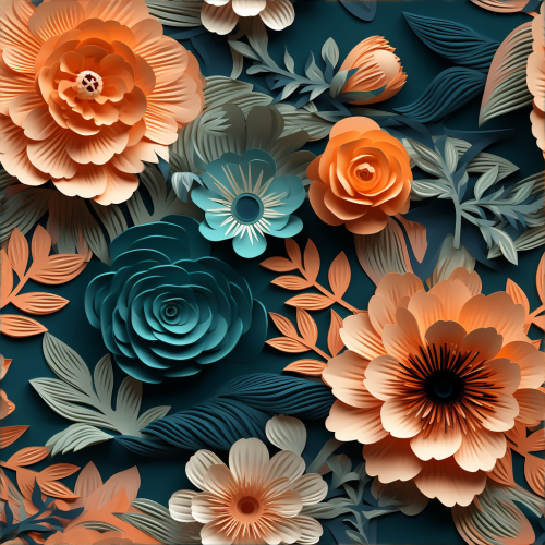 3d floral flowers seamless repeat pattern, floral pattern, flower paper art, in the style of light peach and dark teal polish folklore motifs, detailed foliage, colorful, eye-catching compositions, realistic details, eye-catching composition, traditional composition --tile