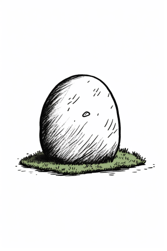 Kids coloring page with a moss covered stone, black and white, simple line art style, minimalist drawing, white background --style raw --ar 2:3 --v 5.1 --s 750 --seed 2323748482
