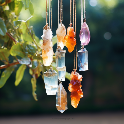 a cluster of hanging crystals, pendant crystals, jewellery crystals, well shaped and precious crystals,