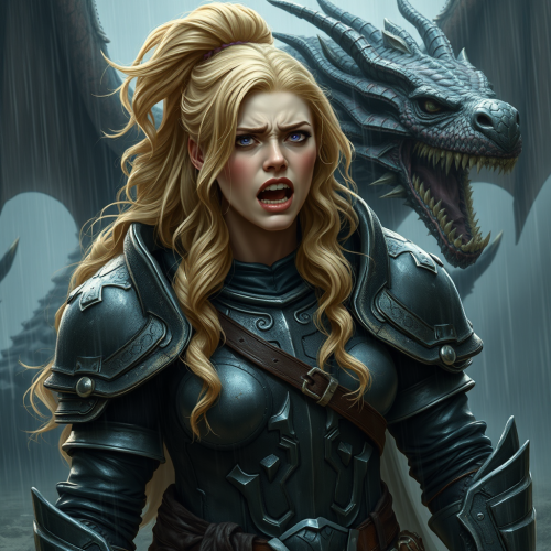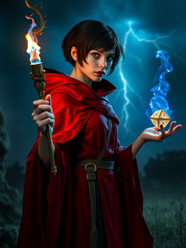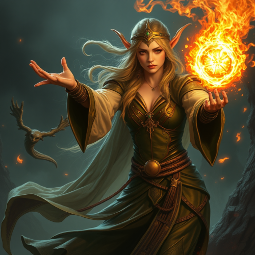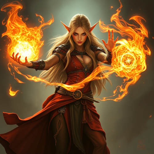 a movie poster in the style of Drew Struzan with the following characters in the world of Dungeons and Dragons. A handsome man with blonde hair, blue eyes, a beard holdingan axe. A beautiful elf women with red hair and bright green eyes producing ice from her hand. A fire genasi red eyes and wearing a leather jacket and smoking a cigar holding a sword on fire. A blonde haired elf man with medium length wavy hair holding a lute. A dwarf warlock with bright ginger hair and beard eating meatballs. And a small halfling man with a beard holding a sword and a glowing orb--ar 101:128