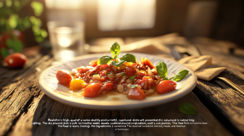 "Realistic high-quality close-up of a beautifully plated dish of [nome della ricetta], captured in natural lighting. The dish is presented on a rustic wooden table with subtle, fresh ingredients scattered around as garnish. The food is warm, fresh, and inviting, with visible textures and vibrant colors. The setting includes small touches, like a folded napkin, silver cutlery, and a glass of water in the background, giving the scene a cozy, appetizing feel." Oeufs brouillés : 2 œufs avec 50 g d’épinards et 50 g de tomates. --ar 16:9