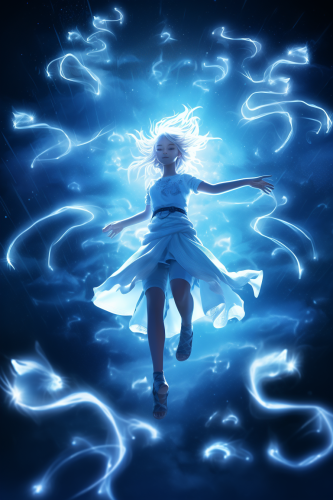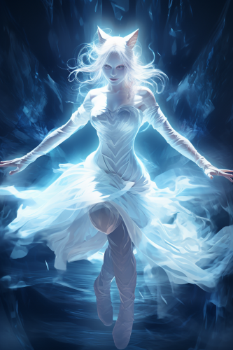 catgirl with ballet-shoes dancing ballet in the style of light white and light azure, necronomicon illustrations, uhd image, swirling vortexes, energy-filled illustrations, aurorapunk, characterized animals --ar 2:3