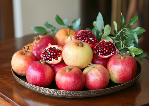 There is nothing that symbolizes Rosh Hashanah more than apples and pomegranates. The idea is to scatter apples and pomegranates in different corners of the house. You can use glass bowls, wooden trays or beautiful ceramic dishes and combine apples and pomegranates in a variety of colors. This simple arrangement adds a natural and beautiful touch, and reminds of the signs of the New Year in every corner of the house. Practical tip: place a bowl with apples and pomegranates in the center of the table or on a shelf at the entrance to the house, and add green leaves for a natural and warming look. --ar 7:5