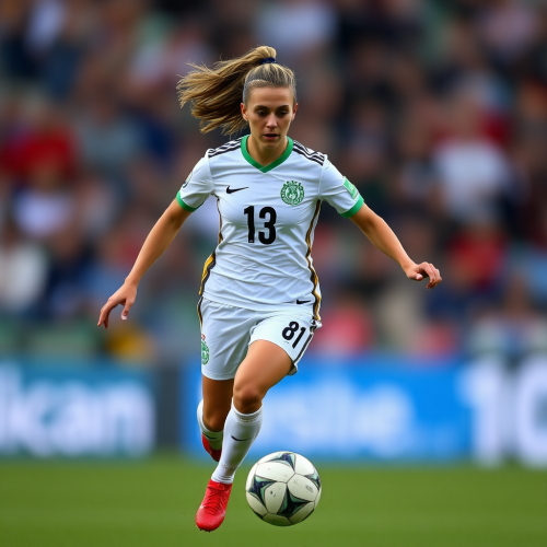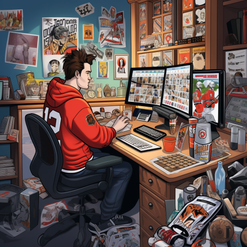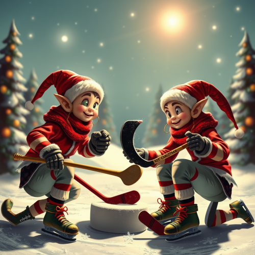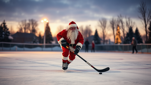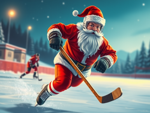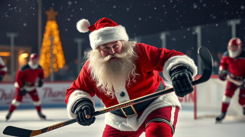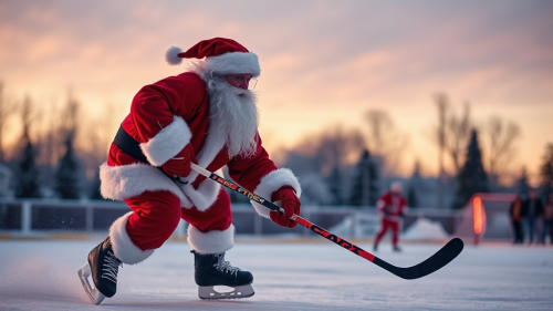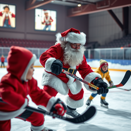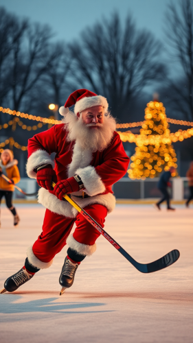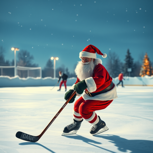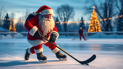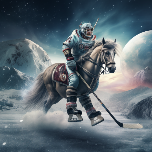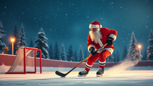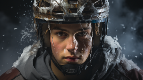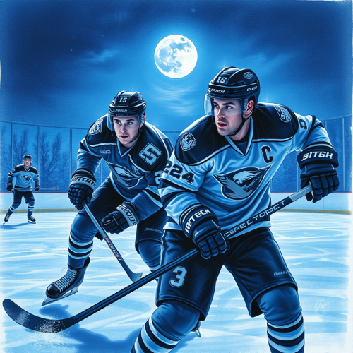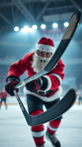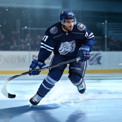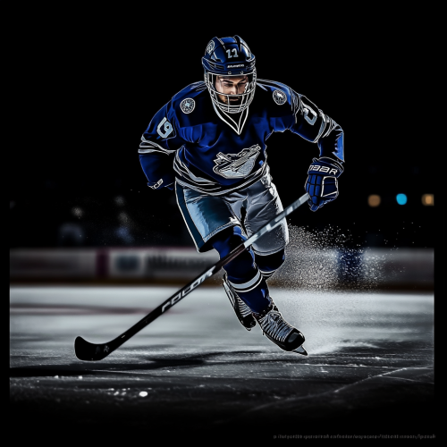 Create a dynamic, high-contrast action shot of a hockey player mid-motion, skating at high speed across the ice. The player is about to take a powerful slap shot, with a motion blur highlighting the speed of the puck and the athlete's movement. The ice is scratched and worn beneath the player's skates, with a dramatic spotlight from above casting shadows on the rink. The background is dark and slightly blurred, making the athlete's detailed hockey gear, jersey, and stick stand out vividly. Sweat is visible on the player’s face, with breath misting in the cold air. Use bold, contrasting colors like deep blues, whites, and metallic accents to convey the fast-paced intensity of the game with a cinematic, heroic composition. Style Composition: Dynamic Energy: The image likely captures intense action, focusing on a sports figure (such as a basketball or football player) mid-movement, conveying energy and movement. Motion blur or streaks of light are used to amplify this effect, highlighting speed and momentum. Bold Contrast: High contrast between the subject and the background. The background is often darker or neutral, allowing the player to stand out. Bright lights, neon colors, or spotlight effects might emphasize the athlete. Texture & Detail: Close attention to the texture of the player’s clothing, muscles, and environment. Sweat, dirt, or other tactile details can enhance realism. Stylized Lighting: Vivid lighting focused on the athlete, often featuring a rim or backlighting that makes the subject pop against the background. Heroic Framing: The subject is positioned heroically, often in a low-angle shot to give them an iconic presence, making them appear larger than life. Subject Matter: Athlete in Action: The athlete could be in a pivotal moment (jumping for a [...]