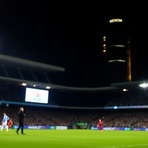 Create a highly detailed photograph, as if taken with a Sony a7R IV, capturing a soccer goalkeeper leaping to defend the goal against a shot in a night stadium setting. Emphasize the goalkeeper's dynamic motion and determination as they dive to save the ball. The stadium should be illuminated with bright lights, creating a dramatic atmosphere with shadows and reflections that highlight the intensity of the moment.