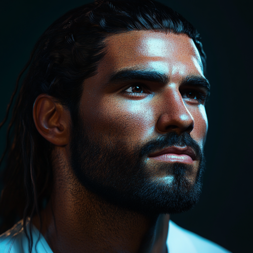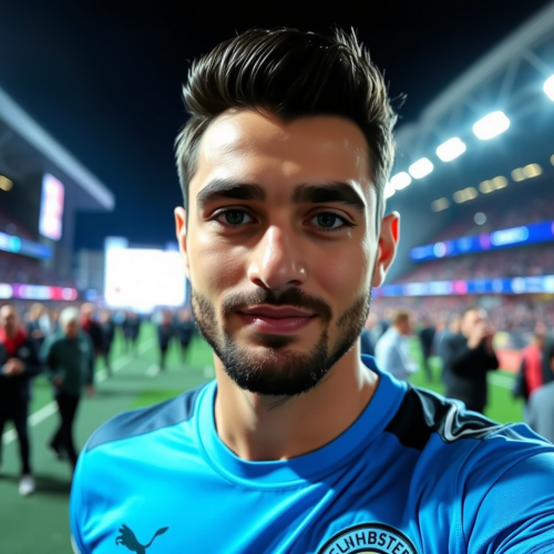 ultra-realistic 8k portrait, Dutch professional soccer player, medium length curly hair, facial hair, tall, resolute persoanlity, white skin complexion