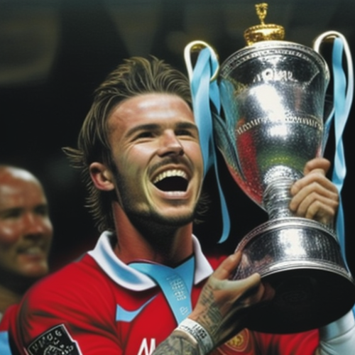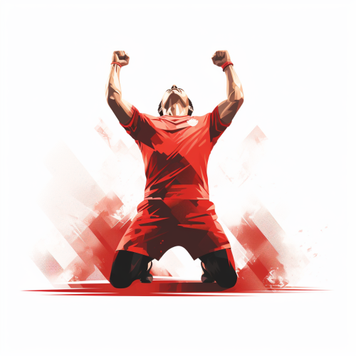 Illustration style of a kneeling on floor Manchester United soccer player celebrating, full body, on a white background.