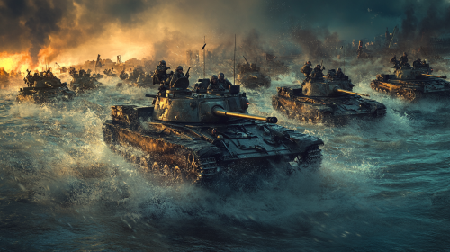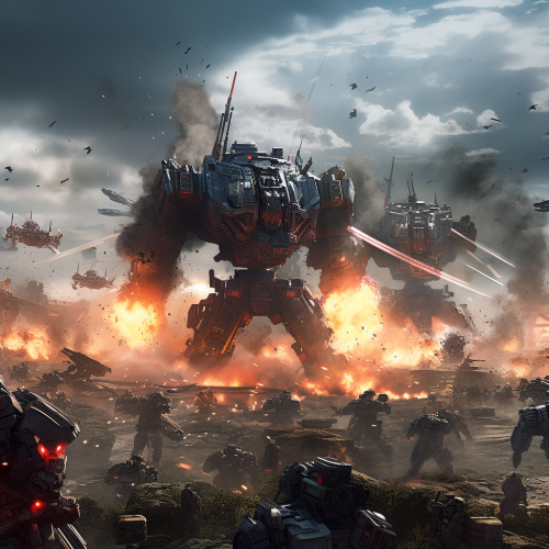 a scene from battle Field V with mechs, tanks and planes in the heat of battle