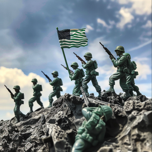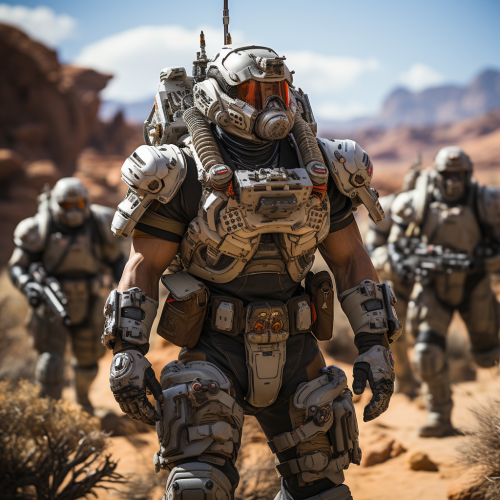In the midst of a hostile alien landscape, a squad of diverse and battle-worn soldiers navigates through the aftermath of a recent skirmish. The soldiers display varying degrees of injuries, such as bandages, cybernetic enhancements, and visible scars. The environment is a mix of futuristic ruins and natural terrain, showcasing the consequences of a prolonged war. In the background, a medical tent or field facility hints at the ongoing struggle to patch up wounded soldiers. The atmosphere is tense, reflecting both the immediate danger and the emotional toll of the ongoing conflict. Each soldier's face tells a unique story, capturing the resilience and hardships of their journey. --s 750 --v 5.2