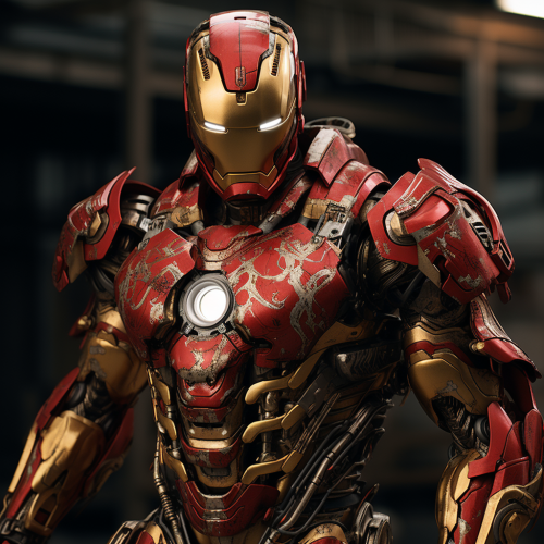 hyper realistic Japanese style iron man with battle damaged armor 4k high resolution hyper realism