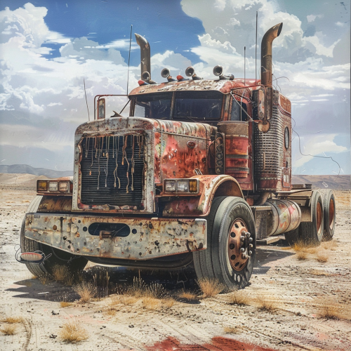 madmax style semi truck, in the desert, sema show, hyper realistic