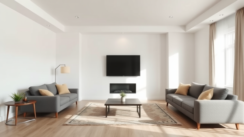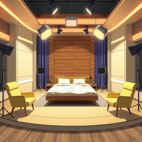 Generate a photo of a square shaped room. Square shaped room, 25 square meters, stylish 1K in white, interior with bed, table and lounge chairs. --s 250 --style raw
