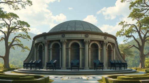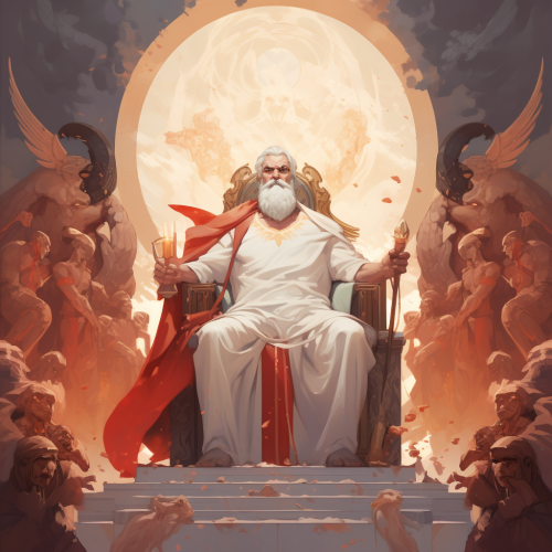 divine council, various ancient gods stand round throne. in the throne sits a old man in a white beard with muscles in the style of atey ghailan