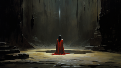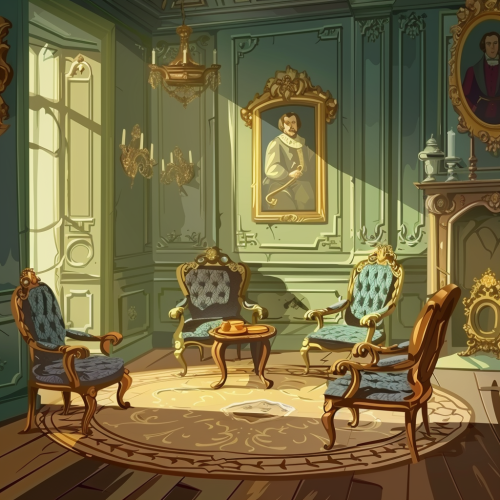 dark throne room with empty throne, creepy, ancient, large room, castle, vampire, royalty, dying light, falling apart, colored pencil sketch
