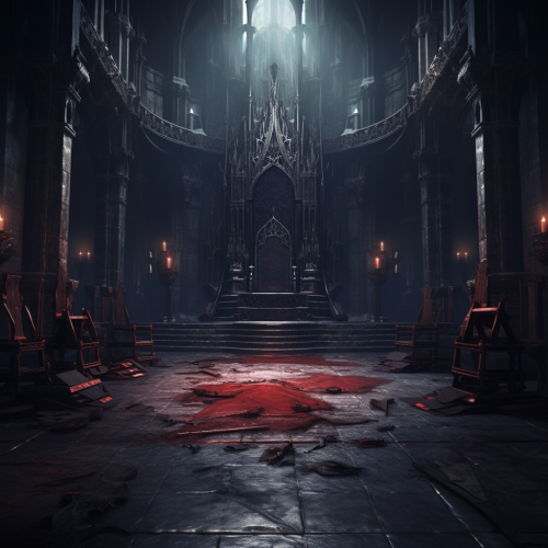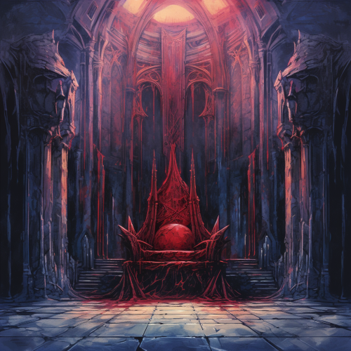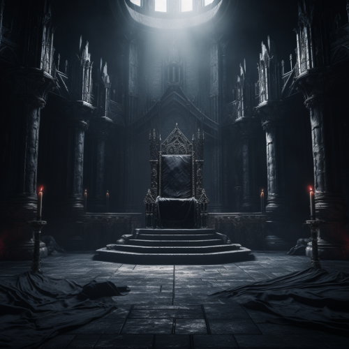 dark throne room with empty throne, creepy, ancient, large room, castle, vampire, royalty