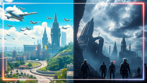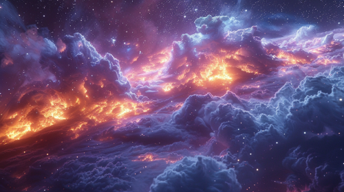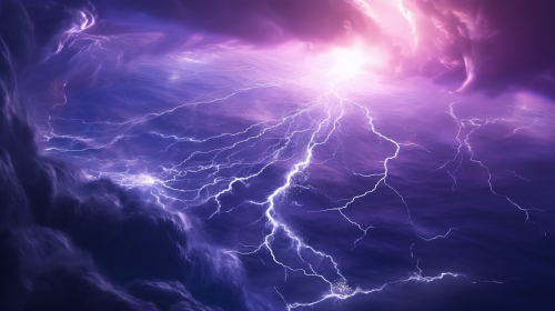 Cosmic Apocalyptic Lightning Storm over the Pacific Ocean viewed from space. Purple Thunder. Raging sea. High waves. Disney Pixar Style. --ar 16:9