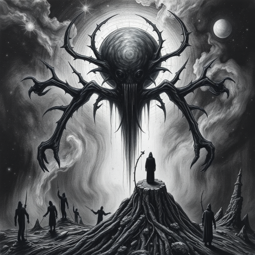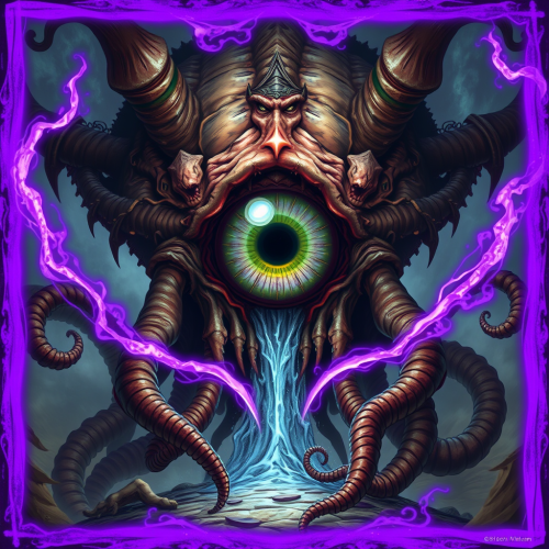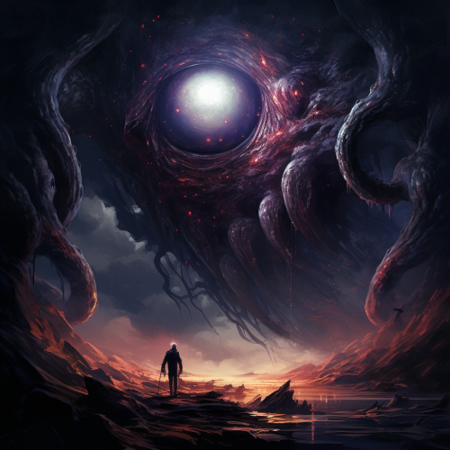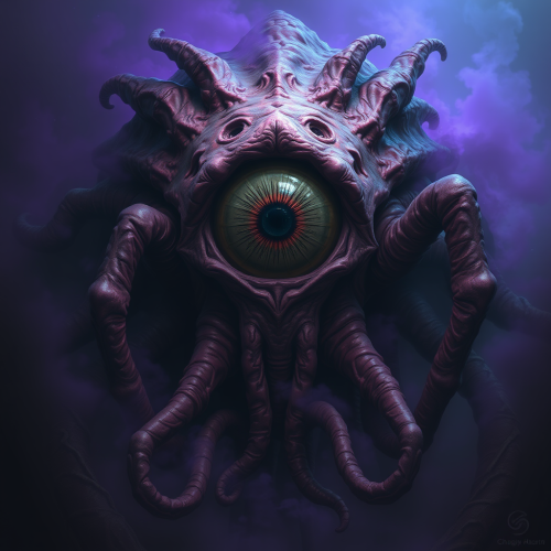 a giant eldritch creature with a giant eye. Tentacles. Scary and ominous. Cosmic horror