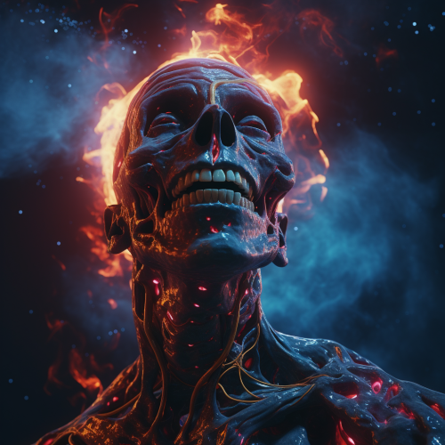 hyperrealistic, 4k, detailed lighting, cosmic, body with no lungs, retro 80s colors
