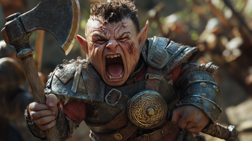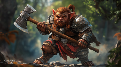 male halfling barbarian, holding an axe, d&d 5e, armor, action shot, fighting, battle, full body image, 4k, vivid, 4k ultra detailed, 4k cinematic, 4k hyper detailed, 4k ultra realistic, 4k hyper realistic, 4k photorealistic, --ar 16:9 --v 6.1