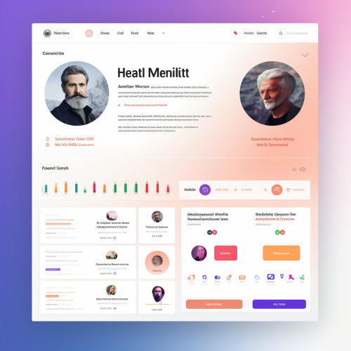 flat design of beuttifull and modern past person profile page for memorials website, main provfile image at the mtop center, white background super high quality, high definition, 4k , --version 5.2