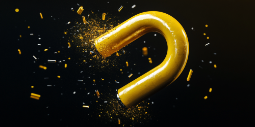High-resolution image of a Magnet attracting and repelling metal objects in yellow. The background is black and clean. The design is modern and clean, with a tech-centric, digital theme --ar 2:1