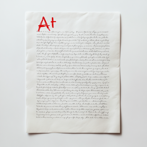A single sheet of white paper with a clean, smooth, white background and no shadow. In the center of the paper, handwritten text fills the page, with a large red 'A+' grade circled at the top right corner. The design is simple, clean, and focuses on the text and grade without any additional textures or objects around.