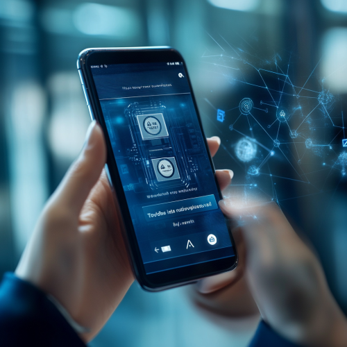An individual on a mobile app screen receiving a digital token that displays their unique national ID number. The scene shows a secure, professional interface with a ‘Token Issued’ notification. The background has a tech-themed design with subtle national flag elements and security symbols. Colors are blue and silver to convey security and trustworthiness.
