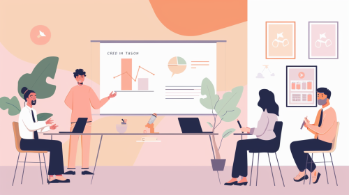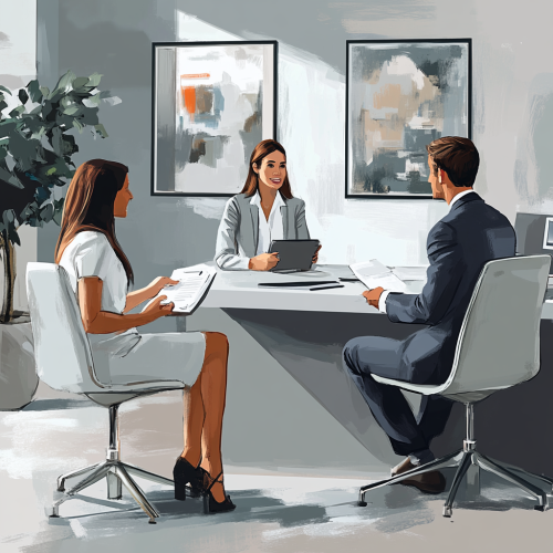 Generate a digital art for A digital art scene depicting a job interview setting where a candidate is confidently answering questions using the STAR method. The background should be in light grey color with modern office elements and professional attire. --ar 1:1