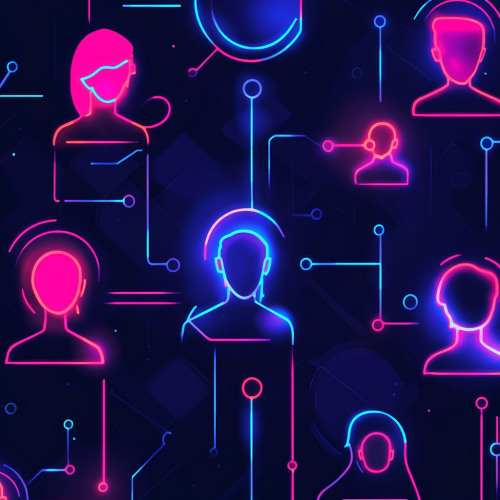a digital graphic that shows staffing support in the style of cyber punk with blue, pink, and purple neon glow, emphasize job recruiters and expertise
