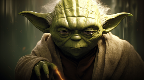 A highly detailed, centered portrait of Yoda from Star Wars, his face intense and fierce with a menacing death stare directly into the camera. His green skin and deeply lined face are sharpened by shadows, with his eyes glowing with a fierce, almost primal energy. His large ears and Jedi robes are slightly visible at the bottom of the frame, keeping the focus on his formidable expression. The background is a misty swamp filled with thick, dark fog, while vibrant green lightning cracks through the haze, casting an eerie, supernatural glow over Yoda's face. Shadows add depth to his expression, intensifying the intimidating and mystic aura around him, creating an epic, menacing atmosphere. --v 5.1 --s 1000 --ar 16:9
